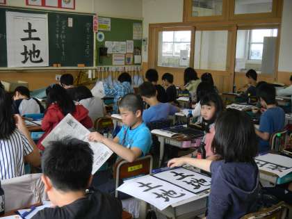 久しぶりの書写の学習でしたが,落ち着いて取り組むことができました。「地」の字の部首とつくりの大きさのバランスに気をつけて書きました。