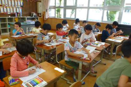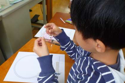 アサガオの種をしっかり観察して,大きく拡大して描きました。アサガオの種を初めてじっくりと見る子どもも多く,「ちゃいろのところもある」「きいろいところもあるよ」と興味津々の様子でした。植える日をむかえるのが楽しみで仕方がないようです。
