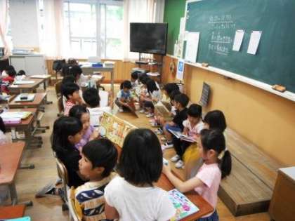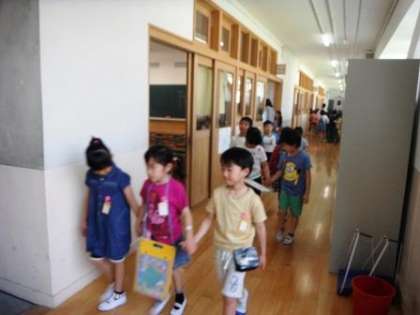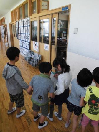 5月15日(火)2・3校時に,2年生が1年生と一緒に学校探検をしました。普段は,2年生も行ったことのない特別教室などを,1年生と手をつなぎ,1年生に説明しながら回りました。案内の途中で,1年生にトイレ等も聞いてあげたりしながら,案内をしてくれていました。また中間休みには,2年生の各クラスで1年生に「読み聞かせ」もして,この日はお兄さん,お姉さんとして頑張って行動することができていました。