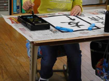 動く新聞紙の上に,うまく着地できると歓声があがっていました。