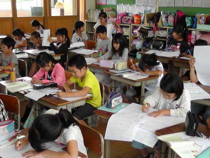 国語『気になる記号』の学習では,ほうこくする文章について学んでいます。ほうこくをする時の文章の書き方や文末表現,横書きの約束などについても学習しています。身の回りにある記号の中から2つを選んで文章を書いています。下書きができたら推敲し,清書をします。難しい学習ですが,丁寧に一生懸命取り組んでいます。