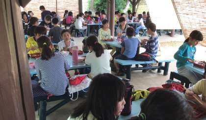 いっぱい遊んだ後はしっかりお昼ご飯を食べていました。