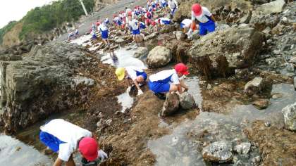 宮崎浜での磯観察が始まりました。大潮のため,生き物をたくさん見つけることができました。