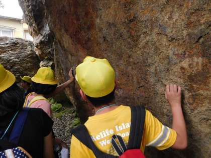 「涼しいなあ」と言いながら,古墳の石室を見学しました。