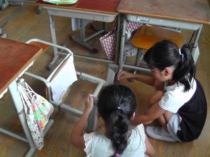 ごみゼロ清掃の様子です。教室や廊下のすみずみまできれいにしようとみんな頑張っています。