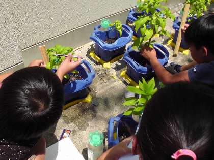 ホウセンカの観察をしてみると,葉の数も増え,高さも高くなってきています。花が咲いているものも見られます。