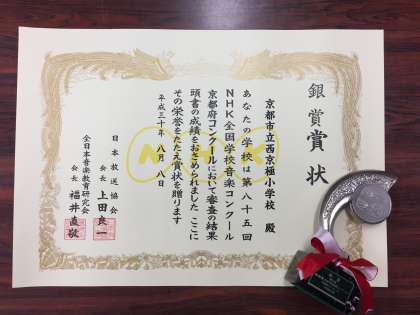 NHK全国学校音楽コンクール京都府コンクールが長岡京記念文化会館で開催され,合唱部が見事銀賞を受賞しました。