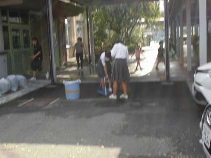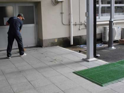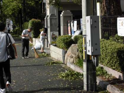 非常に強い台風29号の影響を受け,本校も木の枝が折れたり,葉が大量に落ちたりしました。子どもたちが安全に学校で過ごせるように朝早くから枝を拾い,葉を集めました。