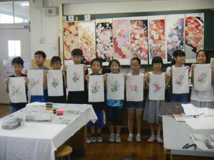総合「すてきな町・人とつながろう」の学習で,伝統文化体験を行いました。京都の代表的な伝統文化、「型友禅」と「西陣織」。たくさんの職人さんにお世話になり,素敵な作品が完成しました。
