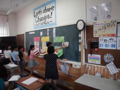 食の学習は4年2組。「バランスよく食べよう」では,自分の体をつくる食事について,赤・黄・緑の働きをする食べ物を偏りなく毎回の食事で意識して食べるようにしようという学習をしました。給食時間もパンは黄,牛乳は赤,野菜は緑と食べ物の三色分けを意識しながら食べていました。