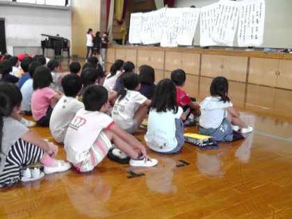 体育館で全校合唱の練習をしました。3年生の子どもたち,曲にのってきれいな声で歌っています。教室でも何気なく歌っている姿も見られます。