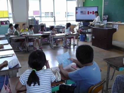 2学期からALTのユジン先生と一緒に外国語活動の学習をします。ユジン先生に初めて会った子どもたちはとってもうれしそうでした。ユジン先生の自己紹介を聞き,たくさんの事を質問しました。ユジン先生は笑顔がとっても素敵で元気な先生です。「また,一緒に遊びたいな。」「外国語活動が楽しみだな。」という様子でいっぱいな子どもたちでした。