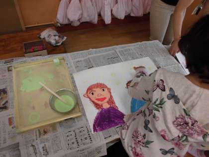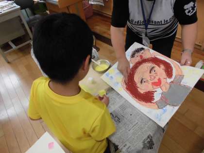 1年生では,敬老の日に合わせて敬老ポスターに取り組んでいます。大好きなおじいちゃんやおばあちゃんの顔を思い浮かべながら,「ありがとう」という感謝の気持ちを込めて描いています。