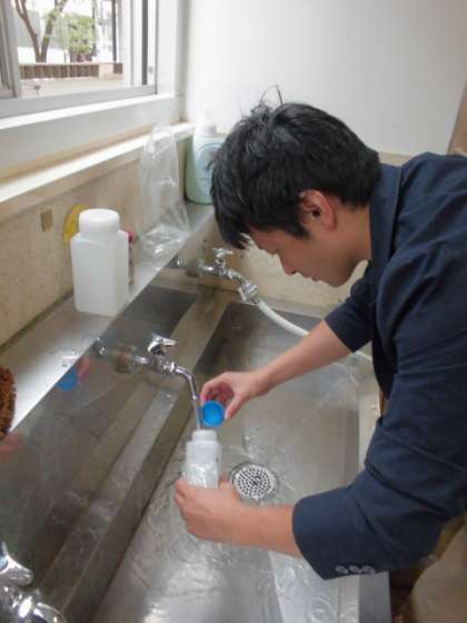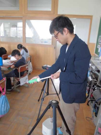 今日は学校薬剤師の芝原先生に来ていただき,学校保健安全法に定められている,飲料水定期検査と教室内空気定期検査を実施しました。