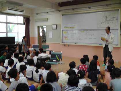 総合の学習で西京極の魅力について学んでいます。今日は,地域の方に来ていただきお話を聞かせていただきました。西京極の地域の歴史や昔の様子などたくさんの事を教えていただきました。校区の地図や昔の写真を見ながらお話を聞き,みんな昔と今との違いに驚き興味をもって聞いていました。また,友だちと大切にすることや夢をもつことなど生きていく上で大切にするべきことについても教えていただきました。これから,さらに校区の魅力を見つけていきます。