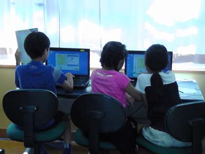 3年生から習ったローマ字を使って,運動会の招待状を作りました。3年生から新しく習ったばかりなので,ローマ字表を見ながら一生懸命パソコンを使っていました。上手くできると,嬉しそうでした。
