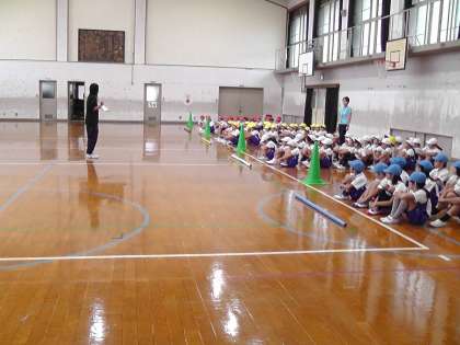 運動会に向けて練習を頑張っています。今日は,応援座席の確認もしました。団体競技「ぐるぐるジャンピング」の練習では,コツをつかめてきたようで,上手に進めることができるようになってきています。