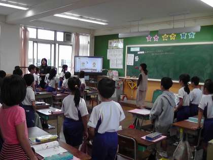 ALTのユジン先生と外国語活動を楽しみました。今回はLesson5の最後の時間です。好きな物について尋ねる表現にも随分となれ,自信をもってコミュニケーションをとることができるようになってきていました。子どもたちは,ユジン先生のことが大好きです。次の学習も楽しみです。