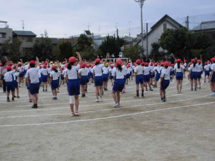 全校練習の準備体操や応援練習は5,6年生の係活動で中心に行ったものです。また,他にもシンボルマークを作ったり,看板を作ったり,ポスターを作ったり,垂れ幕を作ったりして準備をしてきました。