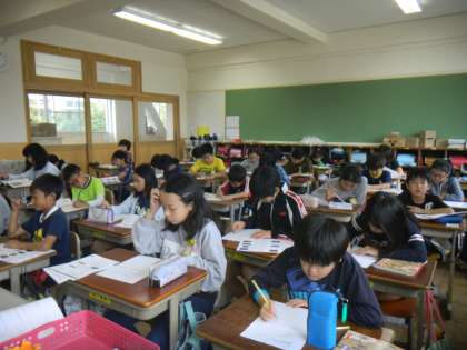 来週実施するジュニア京都検定にむけて,テキストを使って学習しています。この検定を通して初めて知った京都のこともたくさんあります。「そうなんだ!」という声が教室のいろいろなところから聞こえてきます。