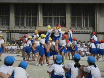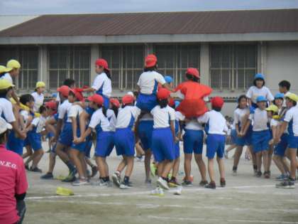5年生の騎馬戦,迫力のある試合でした。最後まで結果が分からず,5年生も見ている人もハラハラドキドキ!!各色の作戦もうまくいったようです。