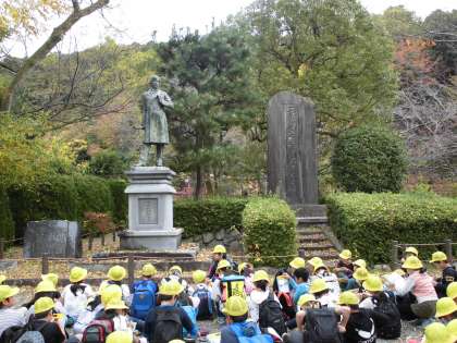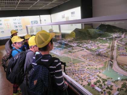 午後からは京都市に戻り,蹴上周辺を歩きました。インクラインや田辺朔朗像,水路閣を見て回り,最後に琵琶湖疏水記念館を見学しました。全ての見学が終わった後に子どもたちのメモ用紙を見たら,用紙の欄外までびっしりとメモをとっている子がたくさんいました。とっても充実した学習ができた社会見学でした。