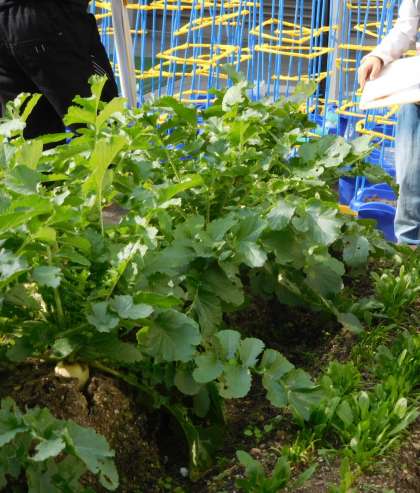 ダイコンが土からはみ出してきました。