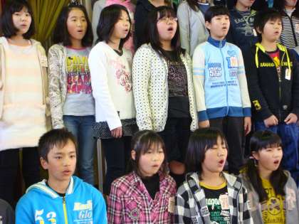 プログラムの最後は,6年生からの歌のプレゼントです。とてもやさしいやわらかい歌声が,体育館に響きます。