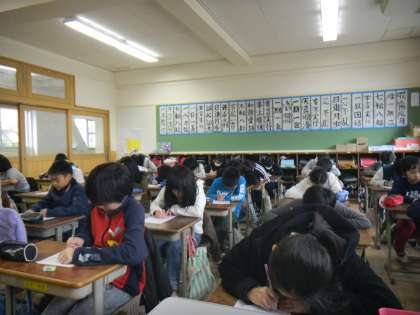 掃除時間のあとはパワーアップタイムです。これまで学習した計算の復習に取り組みます。掃除が終わると,筆記用具を準備し,静かな雰囲気の中で復習に取り組むことができています。