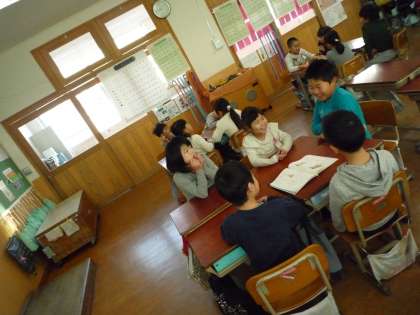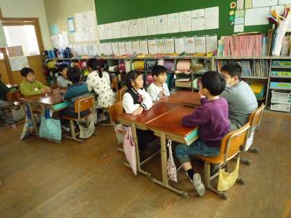国語科の学習では,「6年生を送る会」でどんな出しものがしたいか,グループで話し合う学習をしました。子どもたちは,一人一人どんな出しものがしたいか考え,しっかりと自分の考えを出し合っていました。話し合いをすすめる人が話をまとめながら学習している姿は,大変頼もしいものでした。