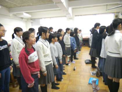 9日(土)に行われる「もうひとつの京都合唱フェスティバル」にむけて,今週も中学校音楽部のみなさんと一緒に練習を行いました。響きのある歌声の出し方,表情の作り方など,いろいろなことを教えていただきました。一時間の練習の後には,音楽室に迫力ある歌声が響き渡り,当日の演奏がとても楽しみになりました。
