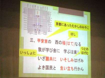 3月4日(月)1校時に朝会がありました。今日は,校長先生が西京極小学校の校歌について話をされました。また,武部先生がジャンプアップ週間にちなんで,「遊びのしょうかい」のお話をしてくださいました。2年生の子どもたちは,しっかり前を向いて話を聞くことができていました。