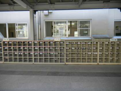 子どもたちが帰った後で靴箱をのぞいてみると…全員の靴がピシッとそろって入っていました。低学年の見本になることでしょう。