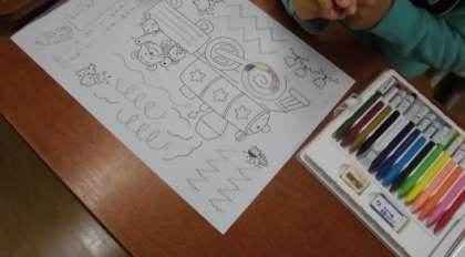 1年生は,書写「せんを なぞってかこう」の学習をしました。筆箱の中に入っているものや鉛筆の持ち方を確かめた後,まっすぐの線やぐるぐる曲がった線,ギザギザの線などいろいろな種類の線をなぞってかきました。「ぐるぐるしている線は,長いからむずかしいな。」「もう全部なぞったよ。」とプリントを友だちや先生に見せながら,楽しく学習しました。