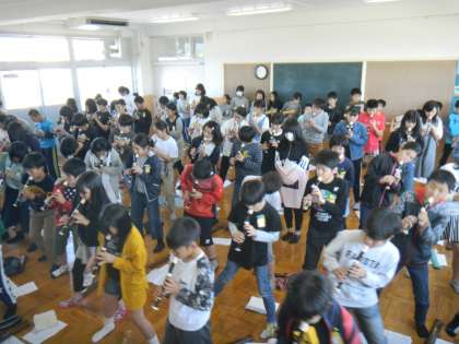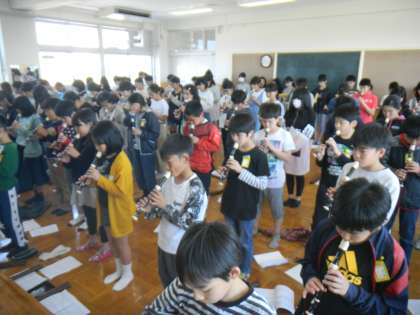 1年生を迎える会にむけての練習がいよいよ大詰めになってきました。リコーダーや打楽器の演奏だけではなく,いろいろなサプライズを用意しています。1年生に喜んでもらえるよう,どの子も一生懸命練習しています。最初は照れ気味だった子たちもみんなで練習しているうちに楽しくなってきたようで,練習している音楽室は活気に満ち溢れています。