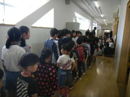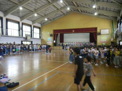今日は「1年生を迎える会」がありました。6年生は1年生の手を引いて入場しました。2年生から5年生が「未来みつめて」という歌を歌うなか,ちょっと恥ずかしそうに歩いていました。