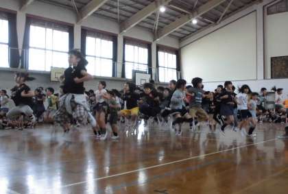 「1年生を迎える会」では,4年生は「ぼよよん行進曲」を踊りました。