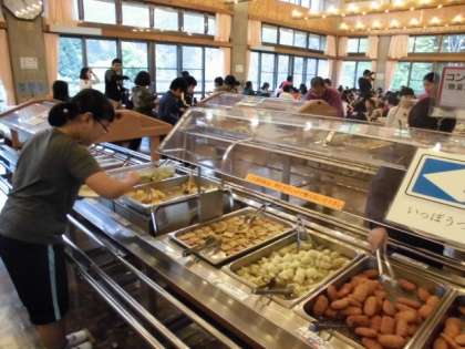 今日の夕食は,食堂でいただきました。フライやコロッケ,肉じゃが・・・とおいしそうなおかずが並んでいました。