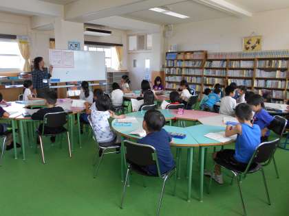 国語科で,図書館の使い方の学習をしました。いくつかのイラストを見て,それぞれが正しい使い方かどうかを考えたり,本のラベルについて学んだりしました。