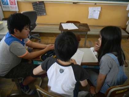 先日の第一回たてわり活動でみんなで話し合った遊びができるよう,6年生は準備をします。用意する物やルールの確認,仕事分担など,各グループで話し合いました。「1年生はこの説明で分かってくれるかな…。」と,低学年のことを考えて話し合っている姿が印象的でした。さすが最高学年!!