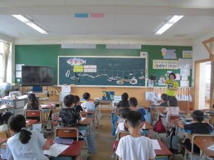 栄養教諭の先生に来ていただき,魚についての話を聞きました。