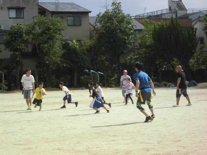 6月16日(日),日曜参観日の午後,おやじの会主催「タグラグビー」と学校運営協議会野外体験スポーツ活動委員会主催「ワンバウンド80」が行われました。