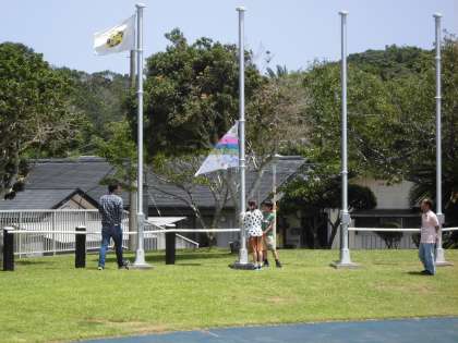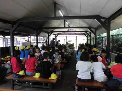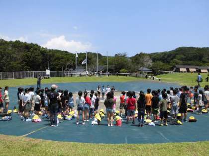 予定を少し変更して,おうちで用意してもらったお昼ご飯を食べた後,入所式を行いました。校歌にあわせて西京極小学校4年生の旗をあげた後,3日間のみさきの家での諸注意をしっかりと聞き,代表児童が誓いの言葉を述べました。3日間,友だちと協力して,元気に過ごしたいと思います。