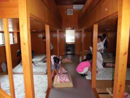 その後女子は今晩寝るバンガローへ移動し,就寝準備を済ませました。友だちと協力し,手際よく準備をすることができました。