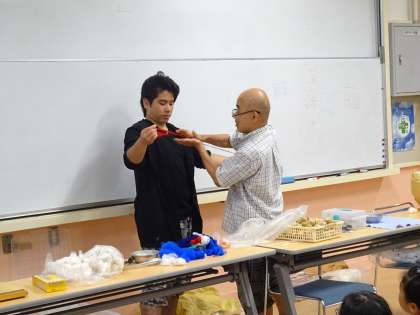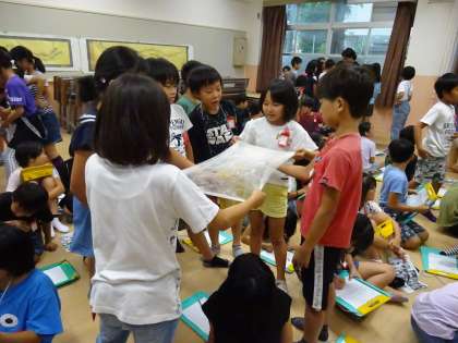 糸の作り方を実際に見せていただいたり,蚕を触らせていただいたりして,子どもたちはとても興味津々でした。また,どのような思いでお仕事をされているのかを知った子ども達は,「お父さんがしていた仕事を受け継いでいくことはすごいな。」や,「糸作りをされている人が減っていく中,続けられている下村さんはとてもかっこいいな。」などの感想を振り返りで発表していました。