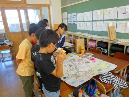 社会科の学習で「火事をふせぐ」という学習をしています。その一環として,防災マップ作りに取り組んでいます。自分が住んでいる家の近くの防災設備を調べ,使い方や気を付けてほしいことなどをまとめています。地図や写真があり,分かりやすいマップが仕上がってきました。一人一人が火事に気を付けて安全な毎日を過ごせるようにしていきたいです。