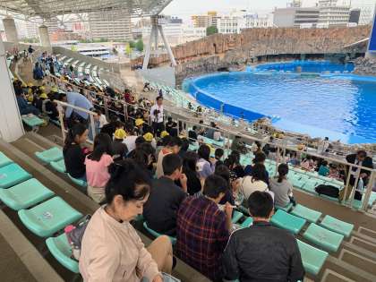 名古屋港水族館に到着しました。お弁当を食べて、館内の見学に出発です。
