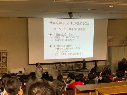 まずは,モンキーセンターやサルについて、お話しをしていただきました。