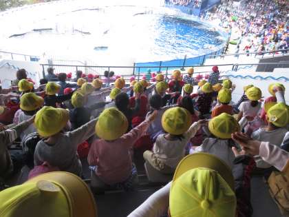 1年生は,校外学習で水族館へ行きました。子どもたちは「先生,国語で勉強した魚がいた。」「かくれんぼしてた。」と嬉しそうでした。イルカのショーでは,飼育員さんの合図でイルカが鳴いたり,イルカによって鳴き声が違ったりすることに大変驚いていました。また,迫力のあるダイナミックなイルカのジャンプ!大きな歓声があがりました。
