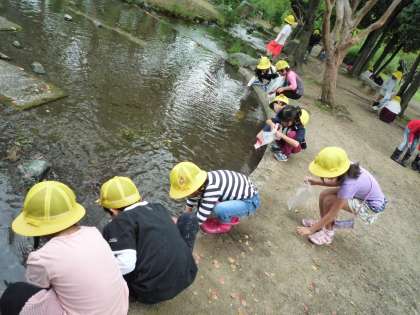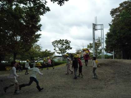 京都水族館でイルカのショーを見た後は,天候にも恵まれ,梅小路公園で秋見つけをしながら遊びました。池にはタニシがいたり,公園にはたくさんのドングリが落ちていたりと,楽しく学習していました。また,広い芝生の広場では,思いっきり走って楽しむことができていました。ペンギンの足跡とそっくりの葉を見つけて,嬉しそうに見せてくれる子どももいました。公園のルールを守って,楽しく学習することができました。